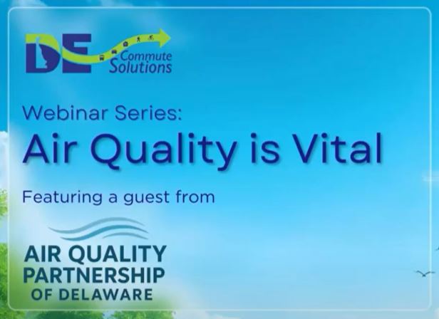 Learn about The Air Quality Partnership of Delaware (AQP) and the partners in this webinar sponsored by Delaware Commute Solutions. Plus, learn about Delaware’s Air Quality and how it is monitored in our state. Special Guest from the Division of Air Quality under Delaware’s Department of Natural Resources and Environmental Control. Click on the graphic below to view the webinar.